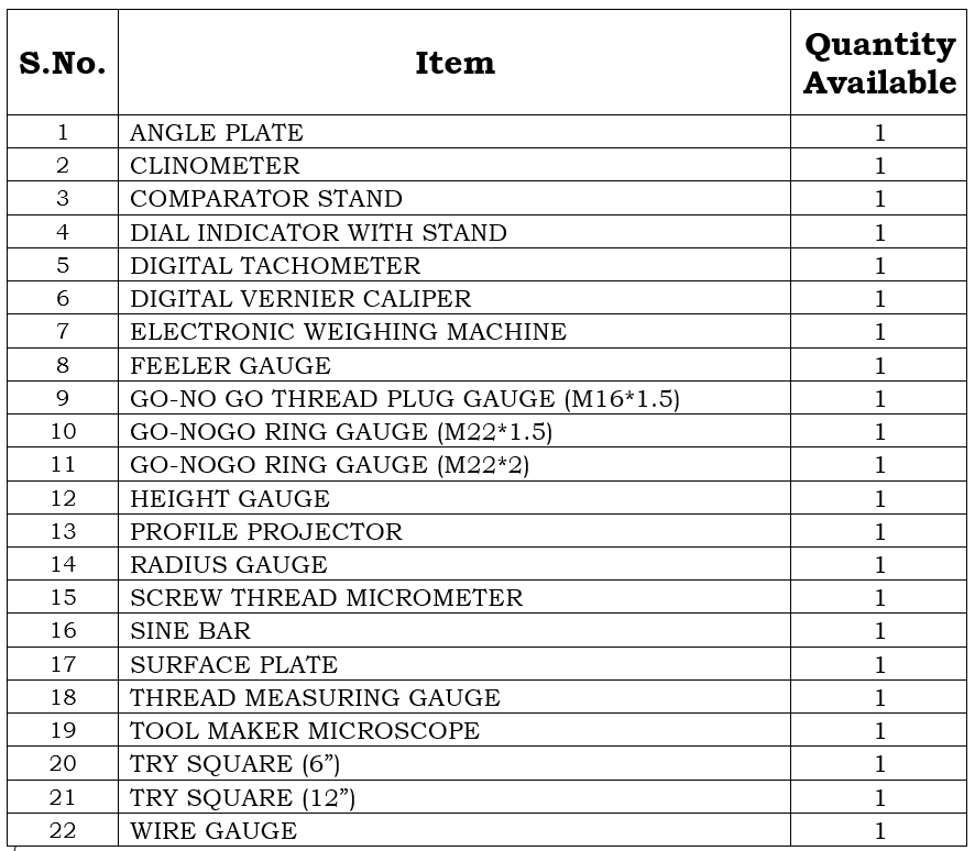 - To familiarize students with basic and advanced measuring instruments such as vernier calipers, micrometers, dial gauges, and surface roughness testers.